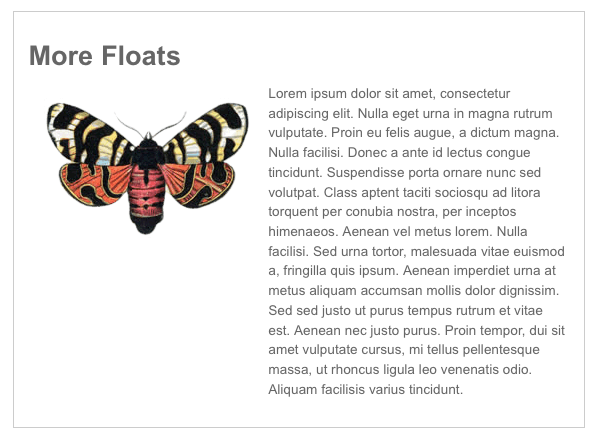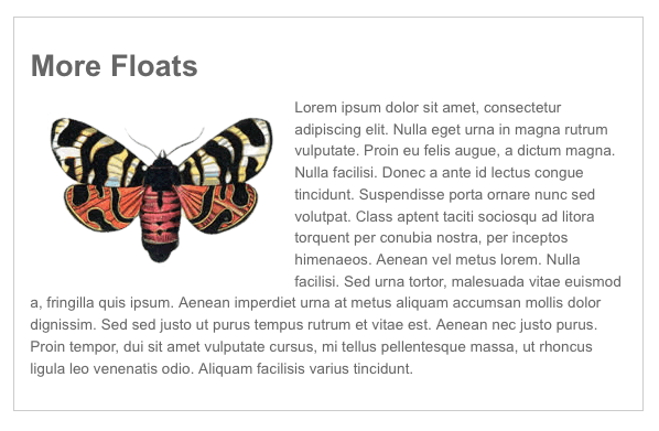 When we float the image to the left, the text wraps around it. Here is the code that floats it: