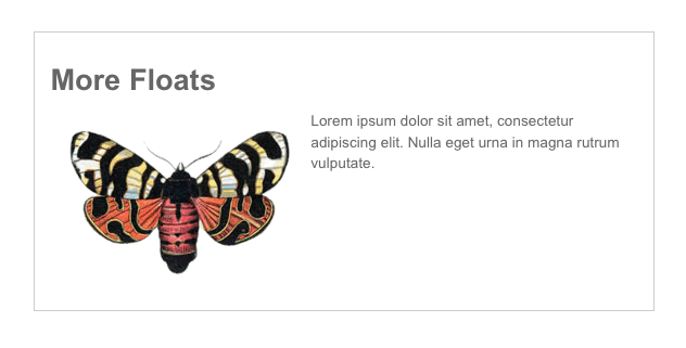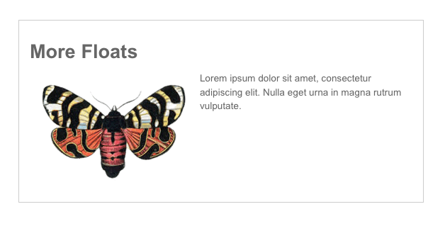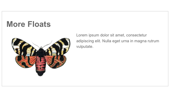 Floats are used in CSS to let two objects sit next to each other. A float pulls the floated object outside of the normal flow of the page and displaces the objects around it. Here we have a very basic page. It consists of a container div that is 540px wide and centered in the browser window. It contains a headline, and image and a paragraph of text. Here is the basic code: