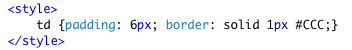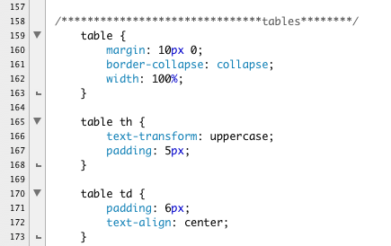 For the table head that labels the columns, we set the text to display in upper-case using the text-transform property. We give the cells a bit of padding.