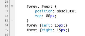 The previous and next buttons are where absolute positioning comes into play. We want the two buttons to sit on top of the images so that when they are presses, the images slide under them.