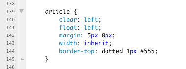 Finally we add a dotted top border to each article. Our article style reads like this: