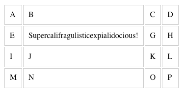 Remember what we said about tables being stretchy and the content controlling the size of the table? Pick a cell -- here the "F" cell is used -- and add some extra content.