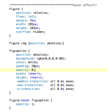 Now we can add the transition property to the figure style using the vendor prefixes. Again, the foot print for this property looks like this: