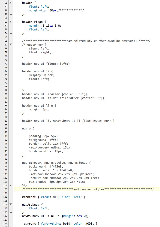 Open basic.css in your text editor. Either comment out or remove completely all styles related to the nav tag in the header. For the demonstration, we chose to comment the styles out. below is a screen shot: