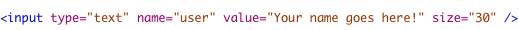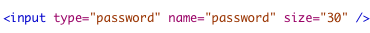 The attributes of a "password" type are similar -- the type attribute changes from "text" to "password". There is no point including a default text because it's just going look like a bunch of dots any way. The code for the password field looks like this: