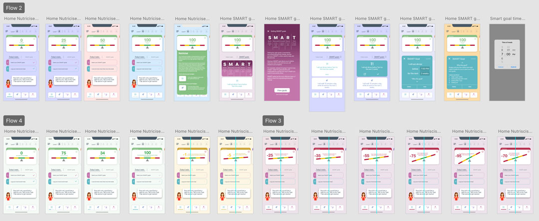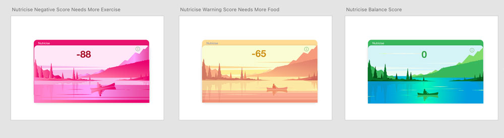 In system settings in some operating systems, a user can set the background and themes to respond to the time of day. This was a concept I explored to help with the accountability linked to meeting fitness and health goals. Knowing the app and score will reset just by a screen color change in the background quietly nudges the user with some psychological safety.