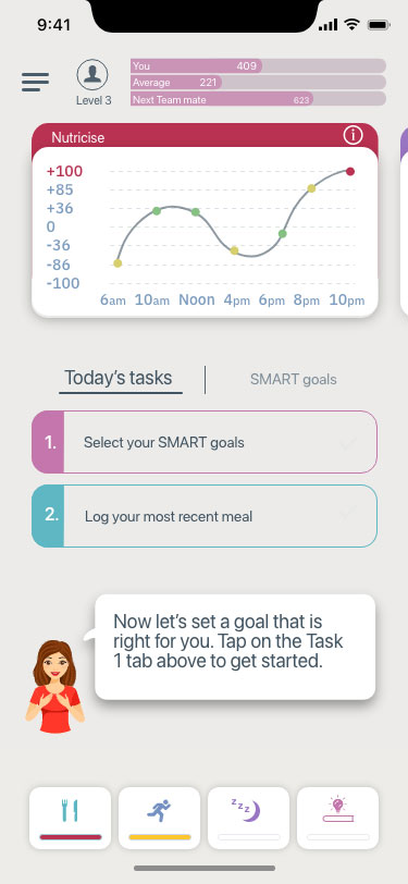 The app is empowered by an AI guide who is always there to help. For those under medical care, especially those with diabetes or pre-diabetes, there is an optional ability to direct data to securely communicate to medical teams under CDC guidelines.